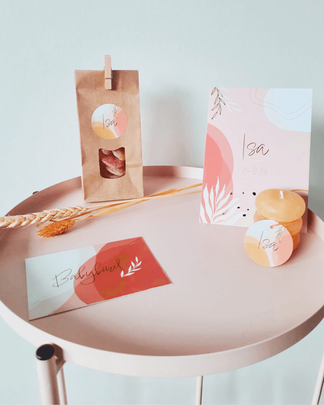 Projects like this one are a reminder that good design does not need to be loud to leave an impression. The warmth was in the details: the softness of the shapes, the care in the type pairing, the way the three pieces worked together as a set. Isa's parents had something they could keep.